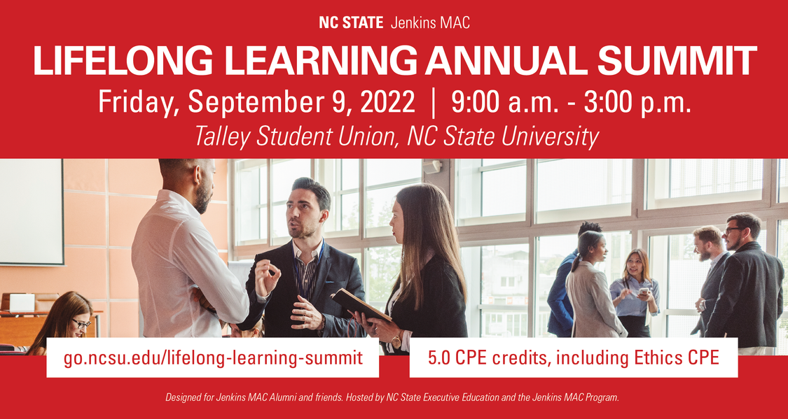 Along with their logo and brand tool kit, I design NC State's Jenkins Master of Accounting Program continuous event and announcement social media assets.